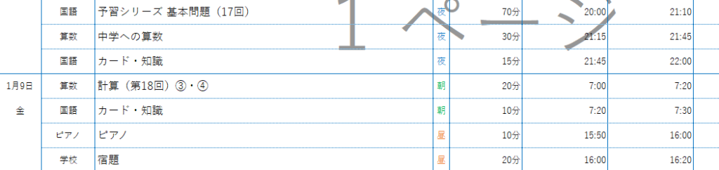まだ冬期講習もあるので変則的ですが、1/5から1週間の自宅学習はまとめると以下のような予定です。
